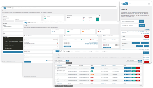 We all have it sometimes. A mail that just doesn’t go through or goes wrong within your website. With this plugin you can find out what is wrong with sending your mails. Every mail that gets logged, edited, deleted, sent will create a new event that gets saved.